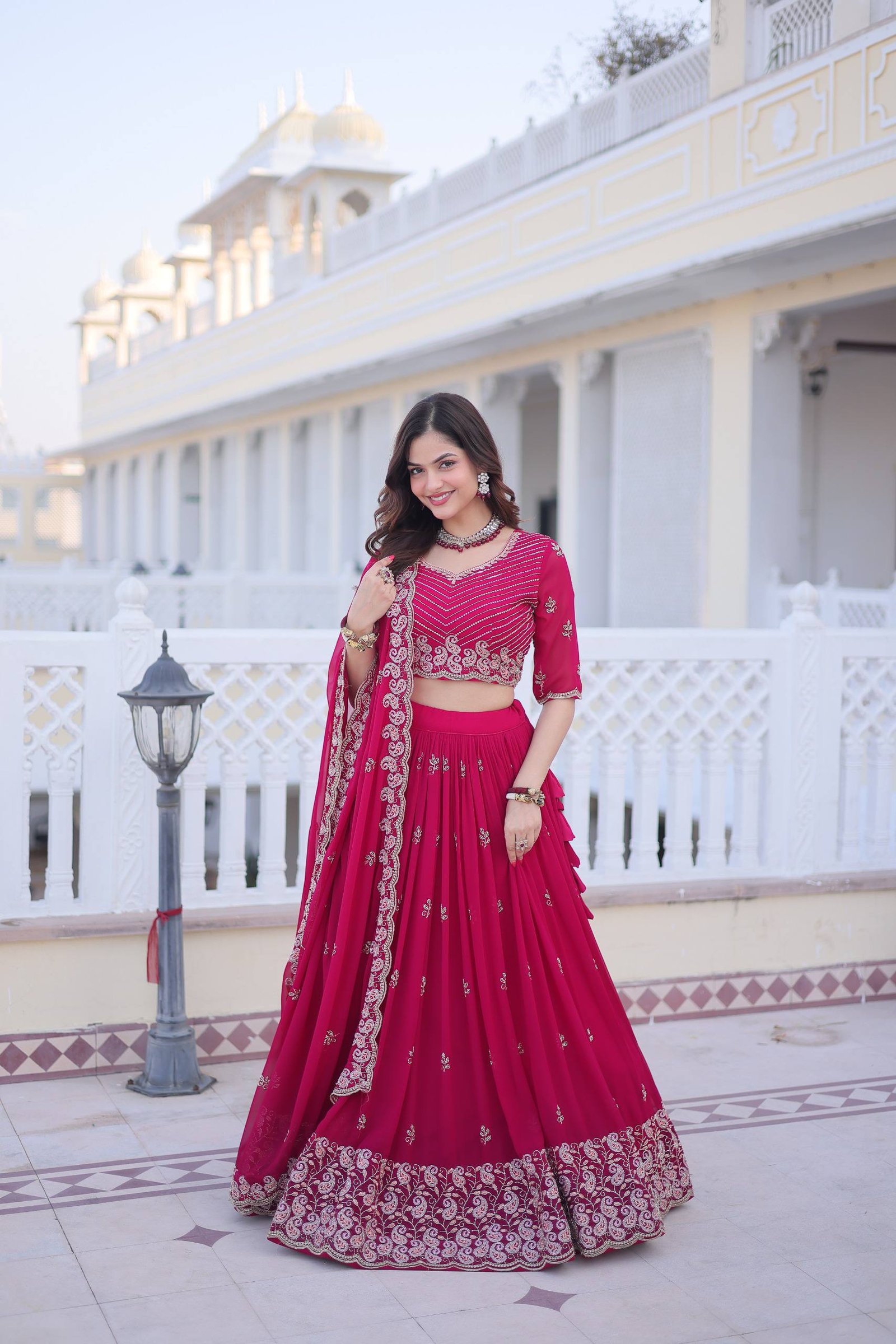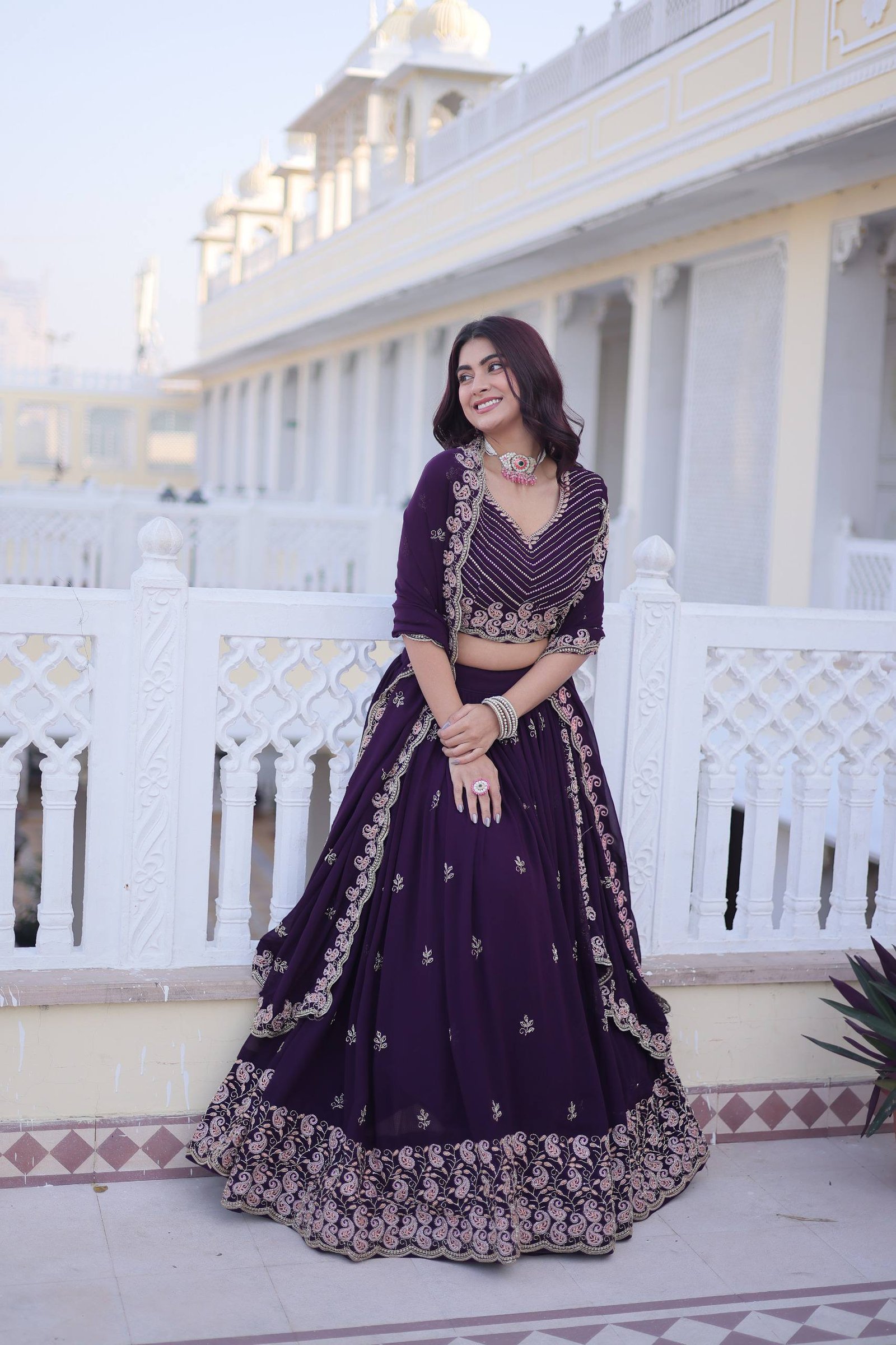 Available in two stunning colors – Rani Pink and Purple, this outfit is ideal for weddings, sangeet nights, receptions, engagement ceremonies, and festive occasions.