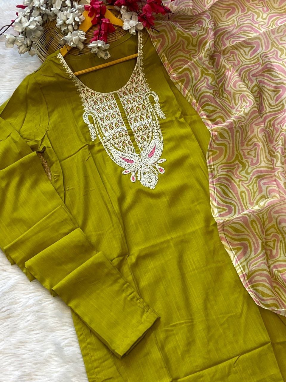Elegant Women’s Liril & Petrol Slub Magic Embroidered Kurti Set with Pant & Dupatta by My Fashion