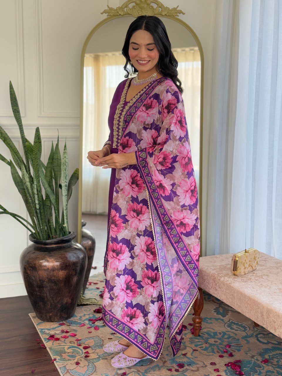 Step into style with this Liril & Petrol Slub Magic Embroidered Kurti Set with Pant & Dupatta. Order online today and enjoy fast delivery across India.